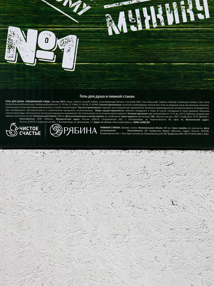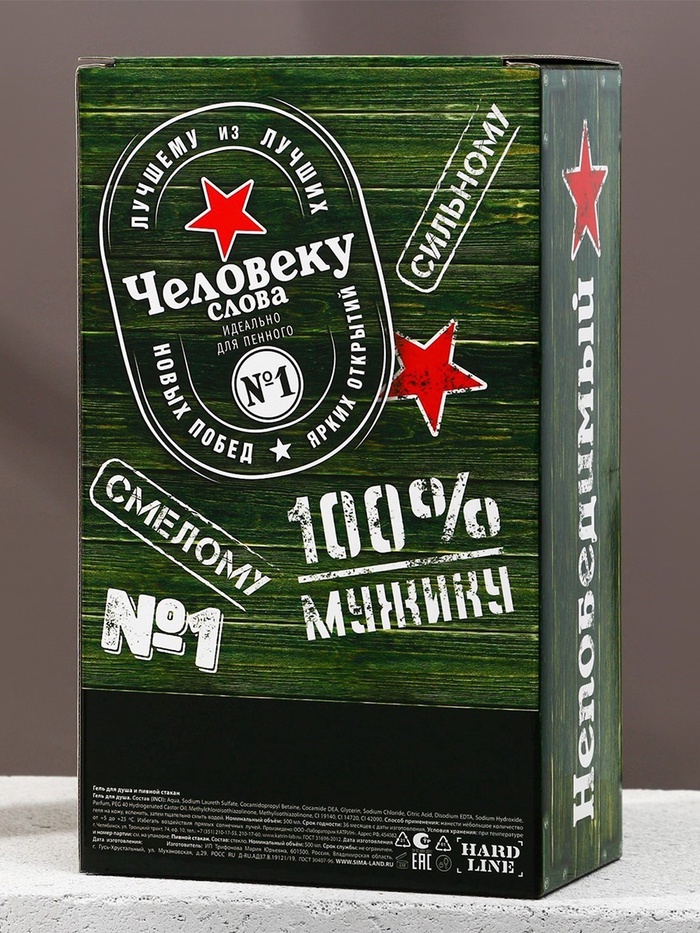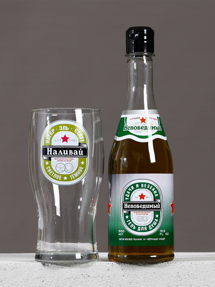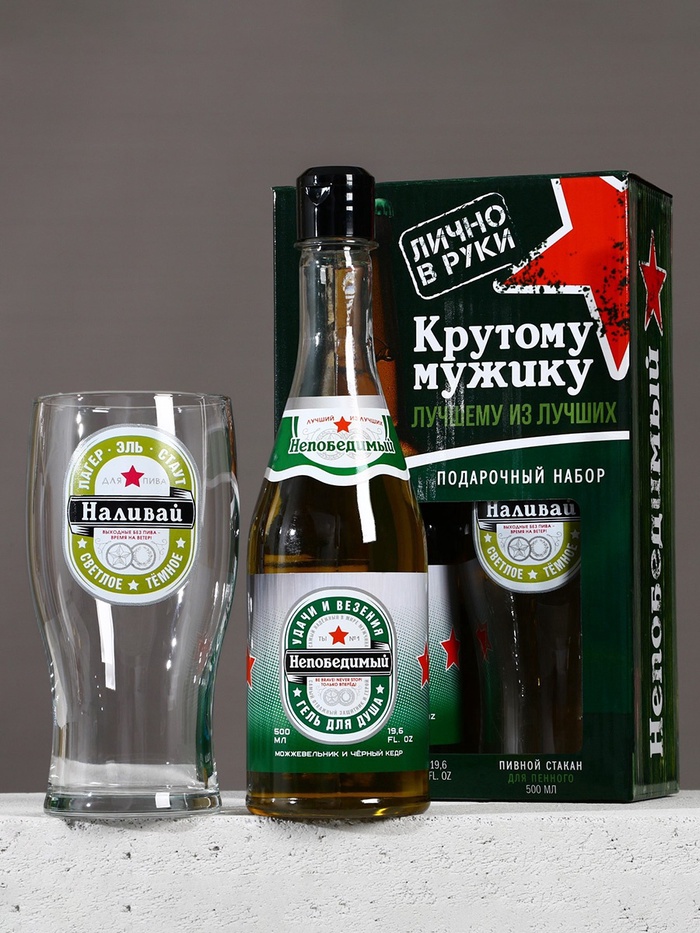 Подарочный набор «Крутому мужику», гель для душа 500 мл и стакан для пива 500 мл, Чистое счастье — Характеристики