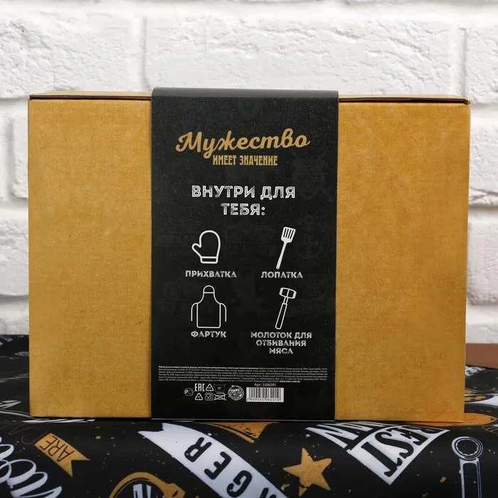 Подарочный набор кухонный «Лучшему во всем»: фартук, лопатка для жарки, молоток для мяса, прихватка — Характеристики