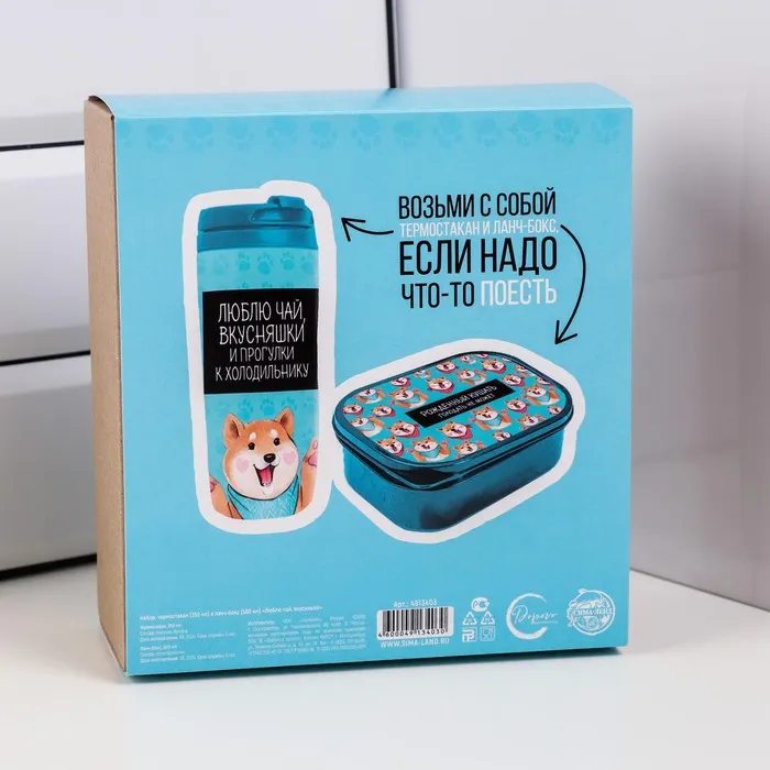 Подарочный набор «Люблю чай, вкусняшки»: термостакан 350 мл, ланч-бокс 500 мл — Характеристики