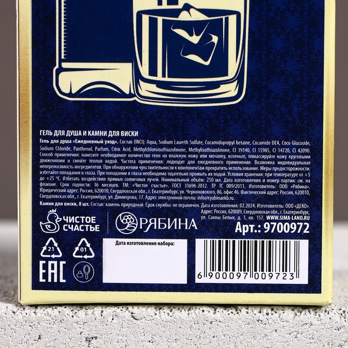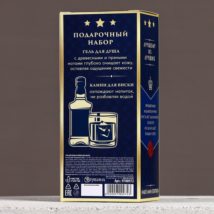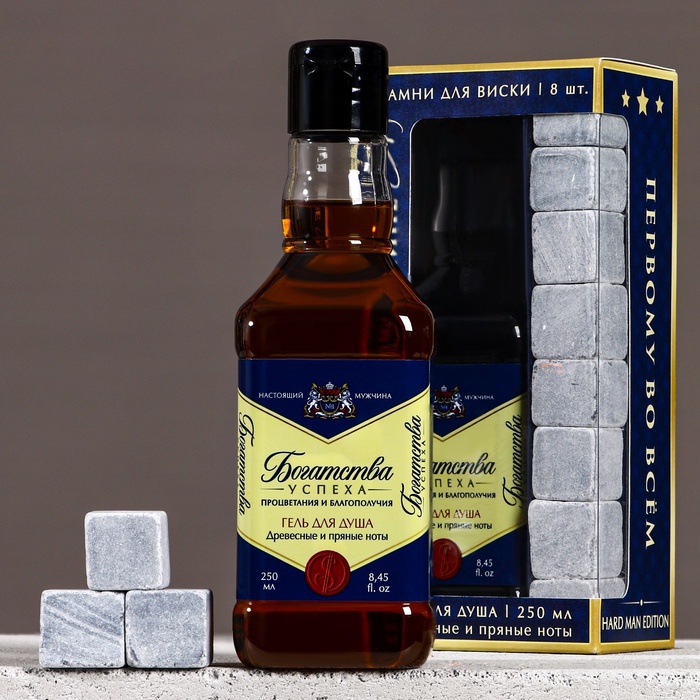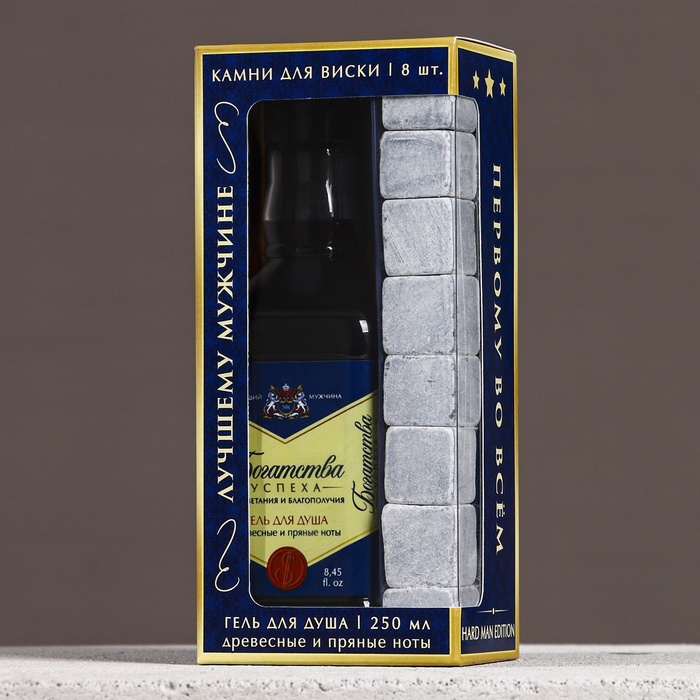 Подарочный набор «Лучшему из лучших», гель для душа виски 250 мл и камни для виски, Чистое счастье — Характеристики