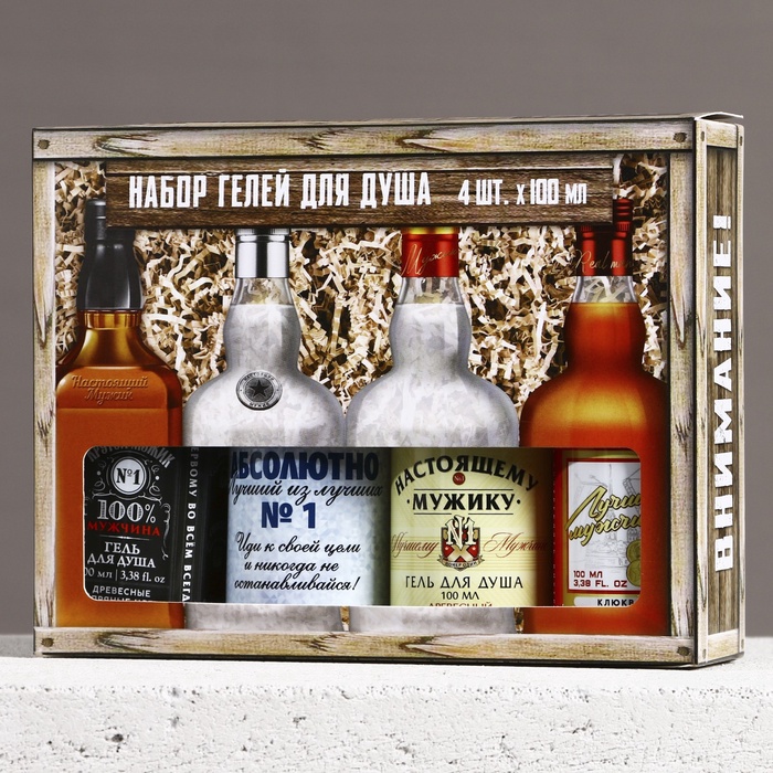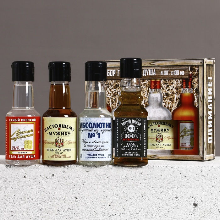Подарочный набор «Лучшему из лучших» гель для душа виски и водка, 4×100 мл — Характеристики