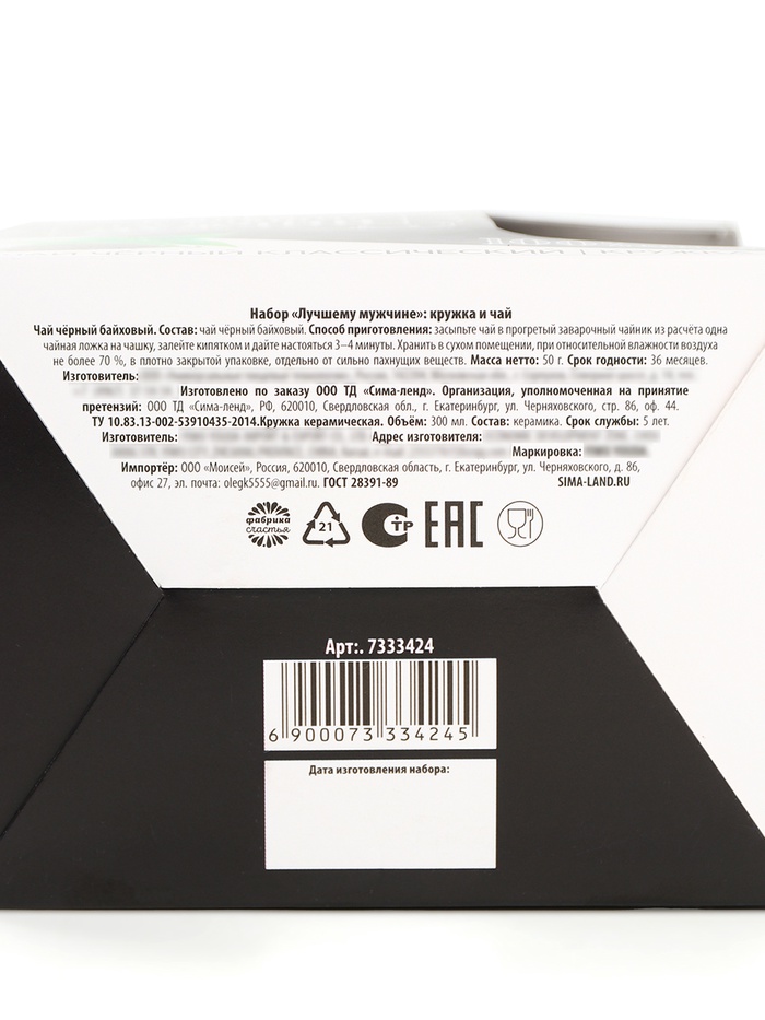 Подарочный набор «Лучшему мужчине»: чай чёрный 50 г., кружка 300 мл. — Характеристики