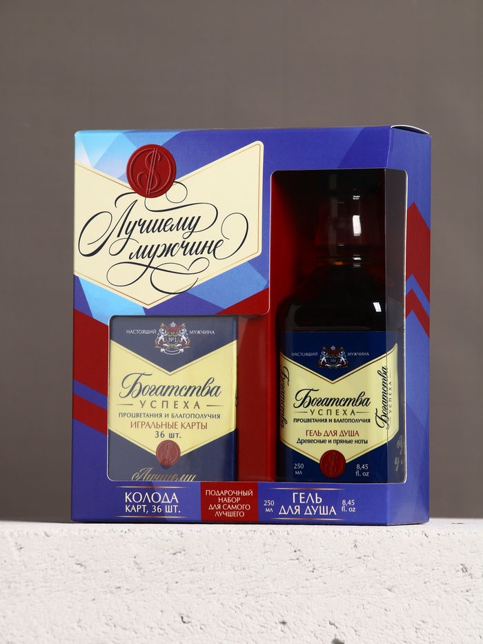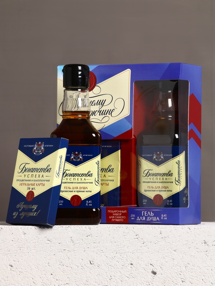 Подарочный набор «Лучшему мужчине», гель для душа виски 250 мл и игральные карты, Чистое счастье — Характеристики