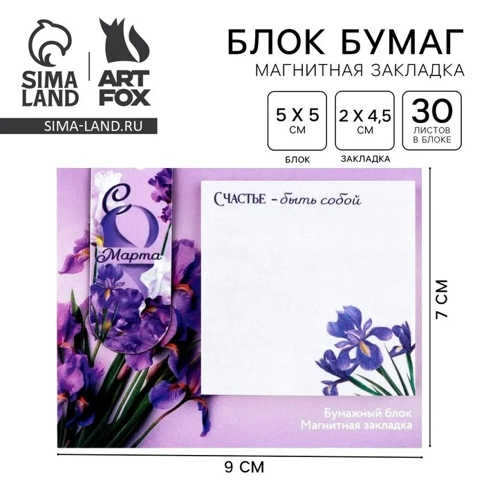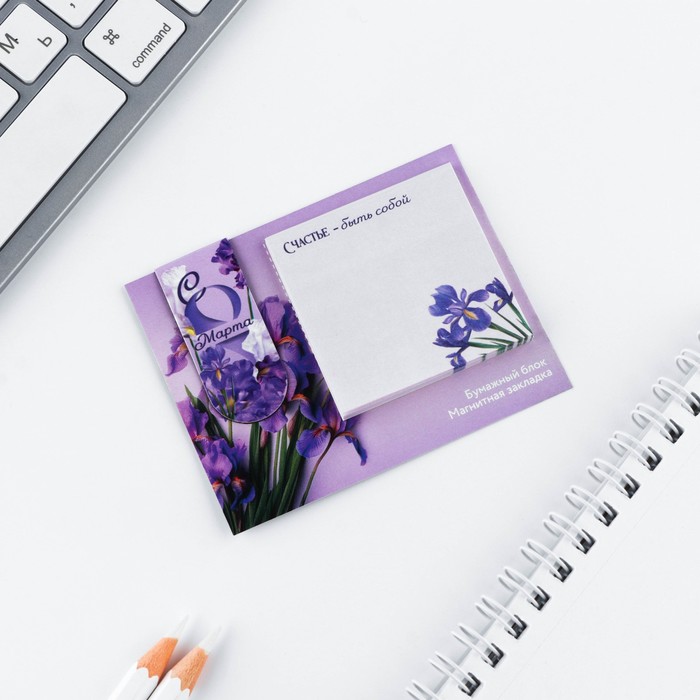 Подарочный набор, магнитная закладка и блок бумаги, 30 л. «С 8 марта» — Характеристики