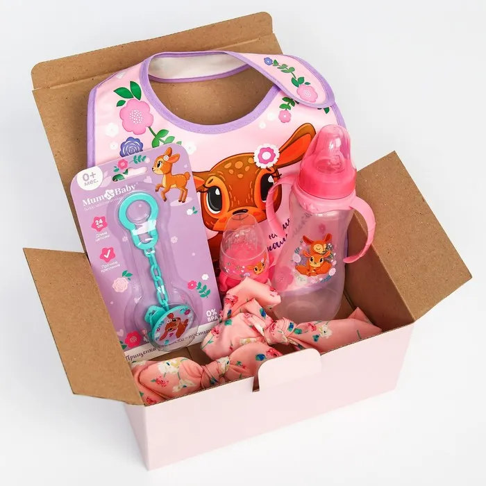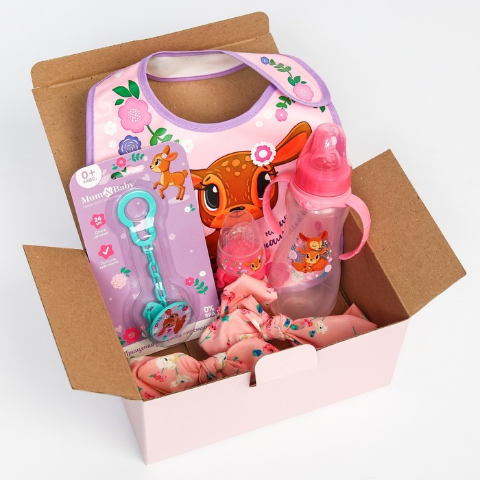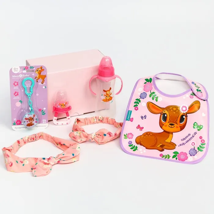Подарочный набор «Мамы и малыши» 5 в 1: бутылочка, нагрудник, ниблер, держатель для пустышки, набор повязок — Характеристики