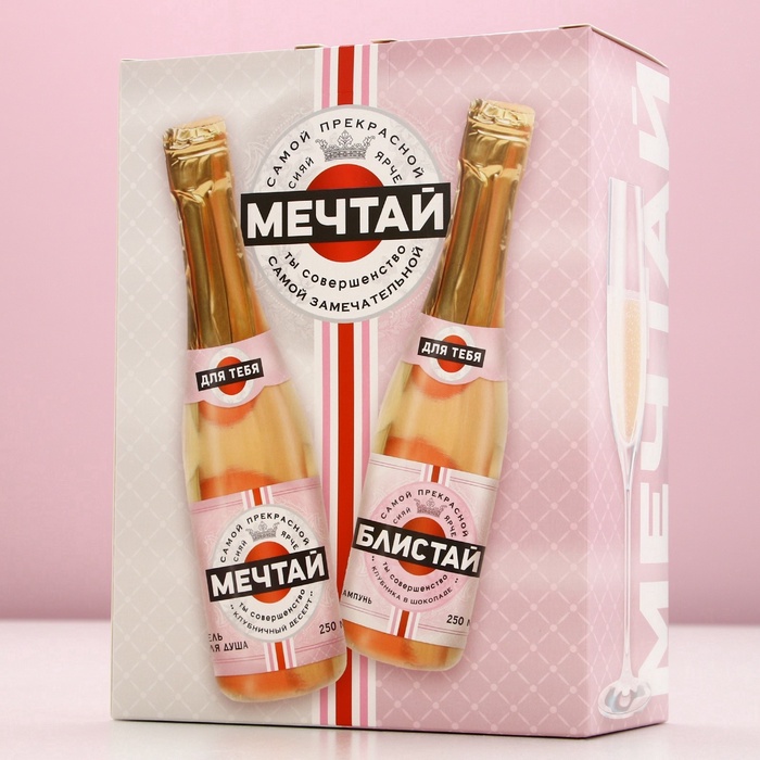 Подарочный набор «Мечтай!», гель для душа и шампунь для волос шампанское, 2×250 мл, Чистое счастье — Характеристики