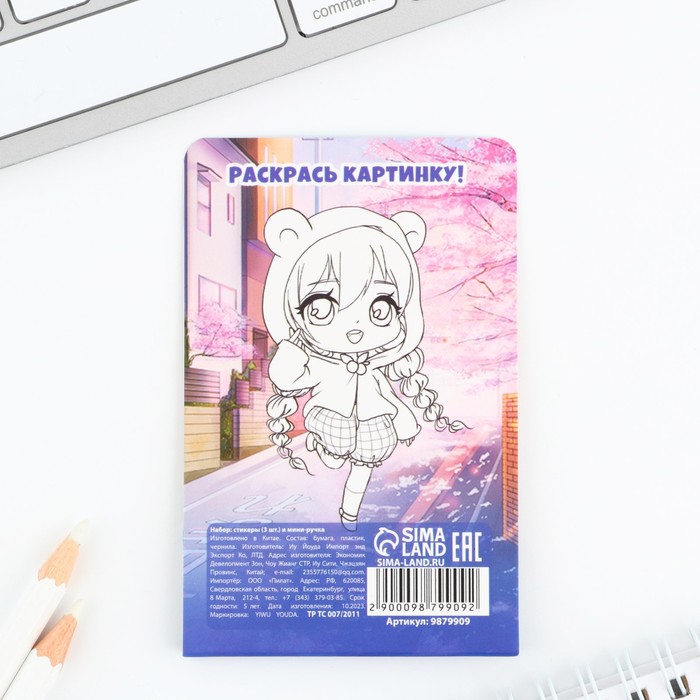 Подарочный набор, мини ручка и стикеры-закладки 20 л «Аниме» — Характеристики