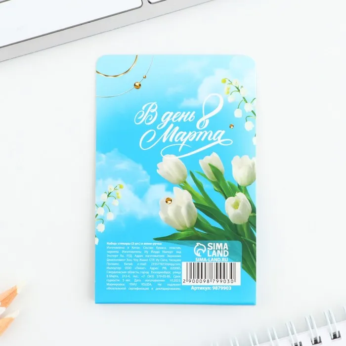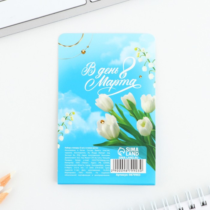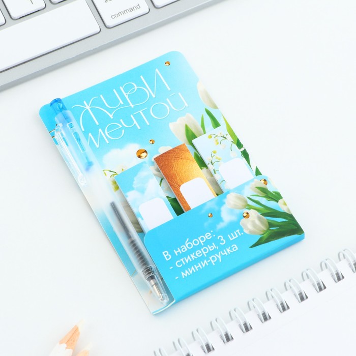 Подарочный набор, мини ручка и стикеры-закладки 20 л «Живи мечтой. 8 марта» — Характеристики