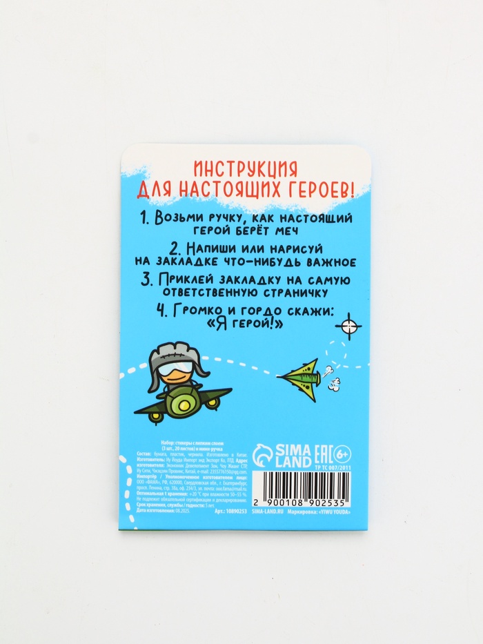 Подарочный набор, мини ручка, стикеры-закладки 20 л. «Настоящему герою» — Характеристики