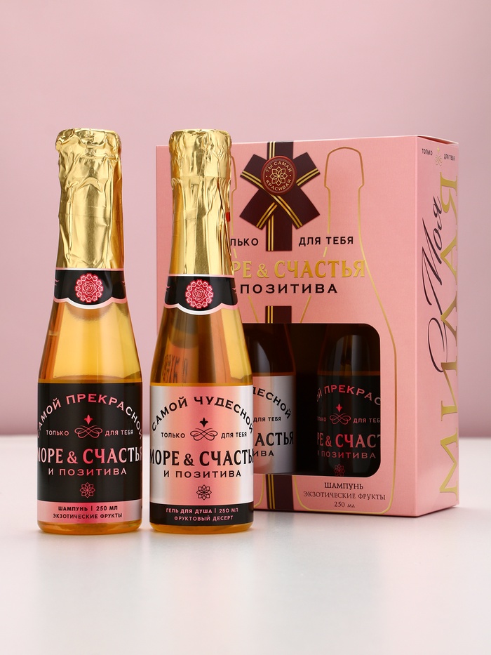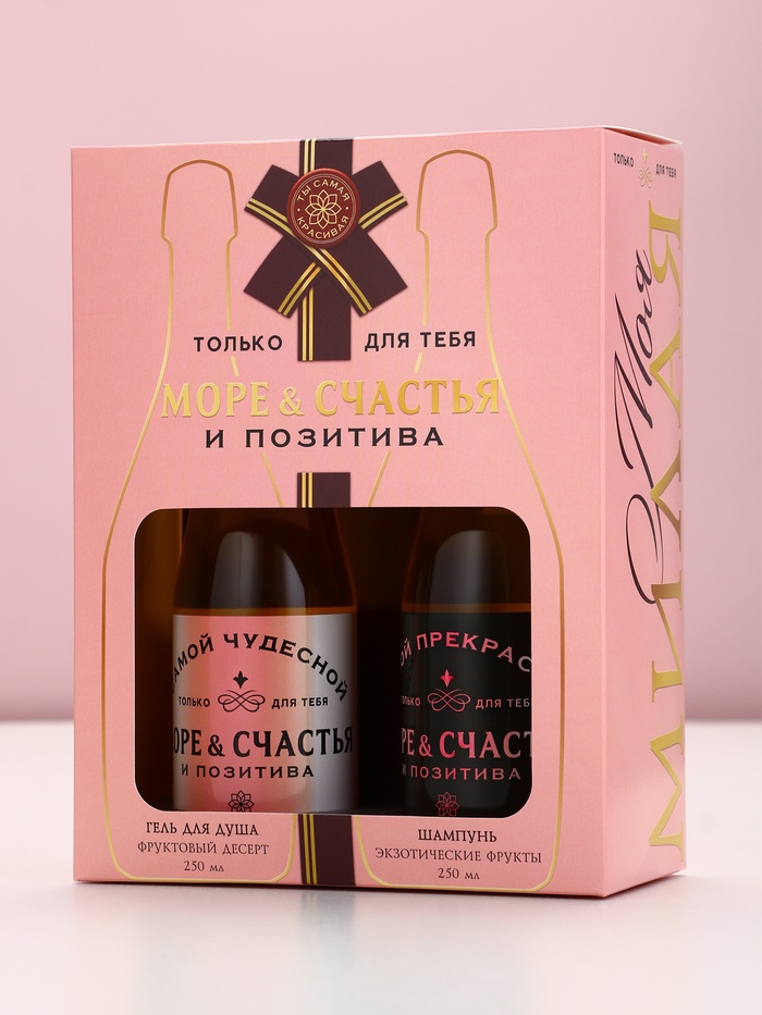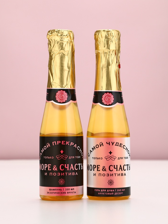 Подарочный набор «Море счастья!»: гель для душа и шампунь для волос шампанское, 2×250 мл, Чистое счастье — Характеристики