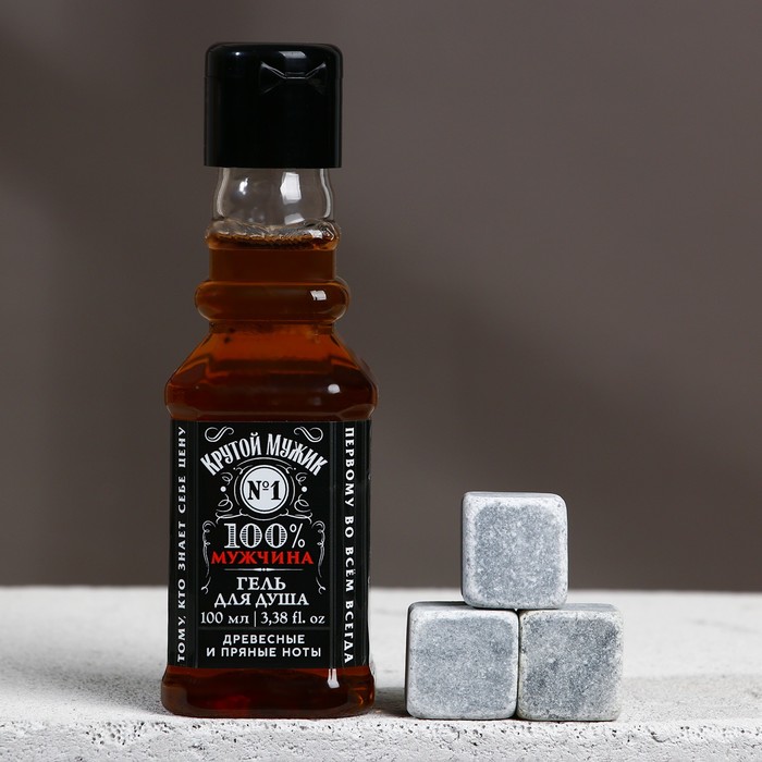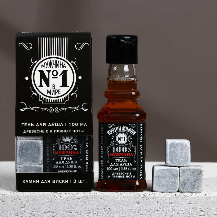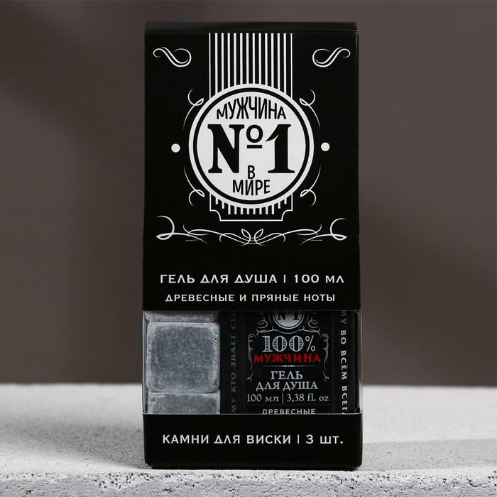 Подарочный набор «Мужчина №1», гель для душа, 100 мл и камни для виски, 3 шт. — Характеристики