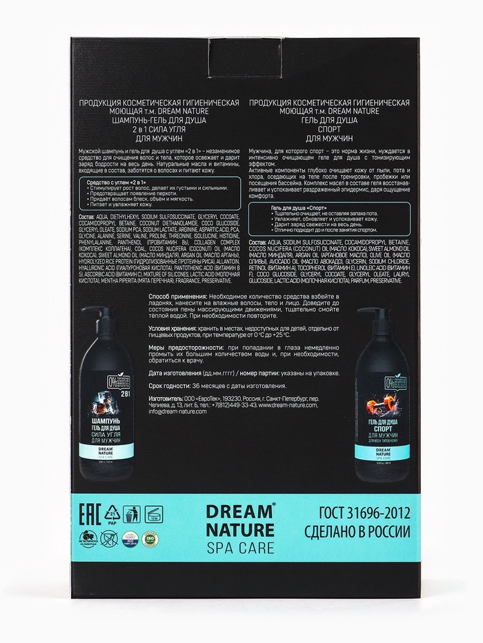 Подарочный набор мужской DREAM NATURE SPA CARE «Сила льда», шампунь 500 мл, гель для душа 500 мл — Характеристики