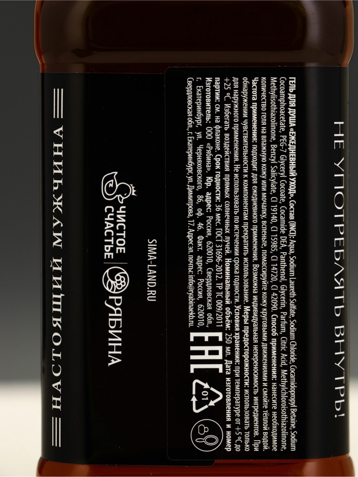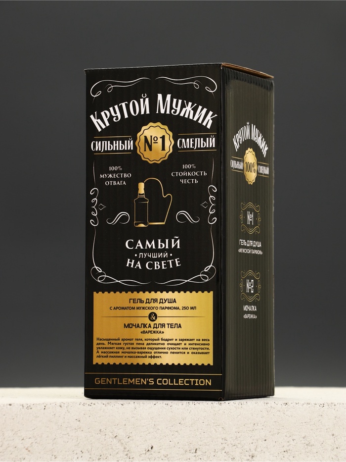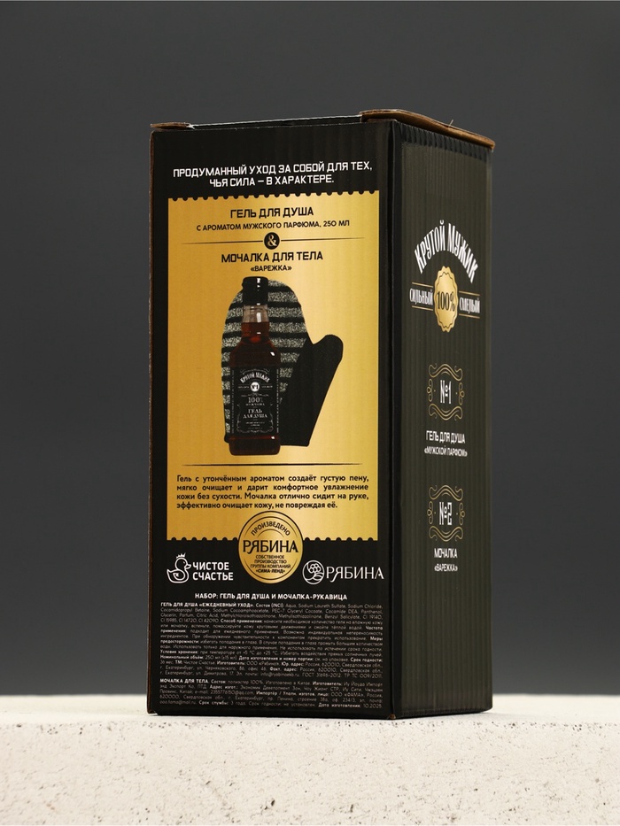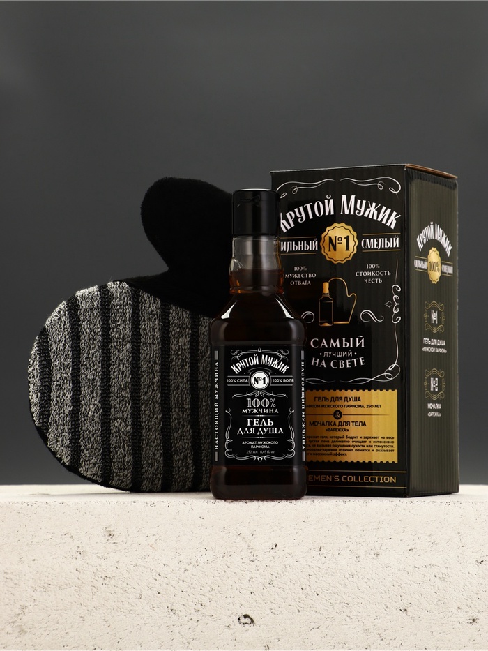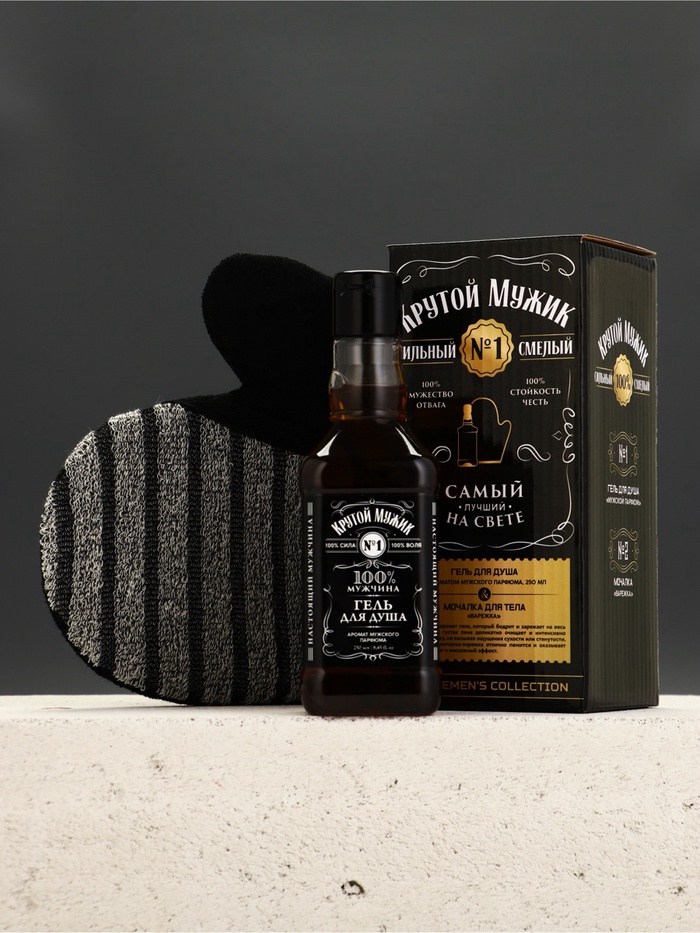 Подарочный набор мужской: гель виски 250 мл и мочалка рукавица, Чистое счастье — Характеристики