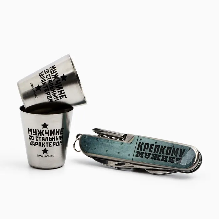 Подарочный набор мужской «Настоящий мужской набор»: нож мультитул, стопки 2 шт — Характеристики