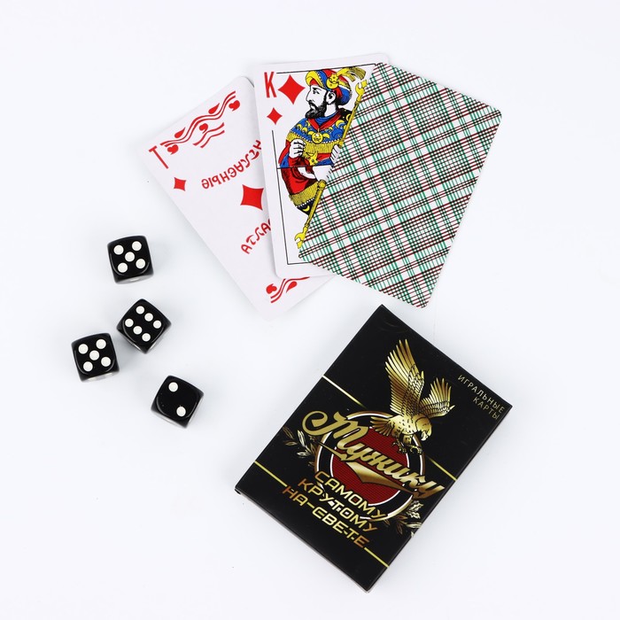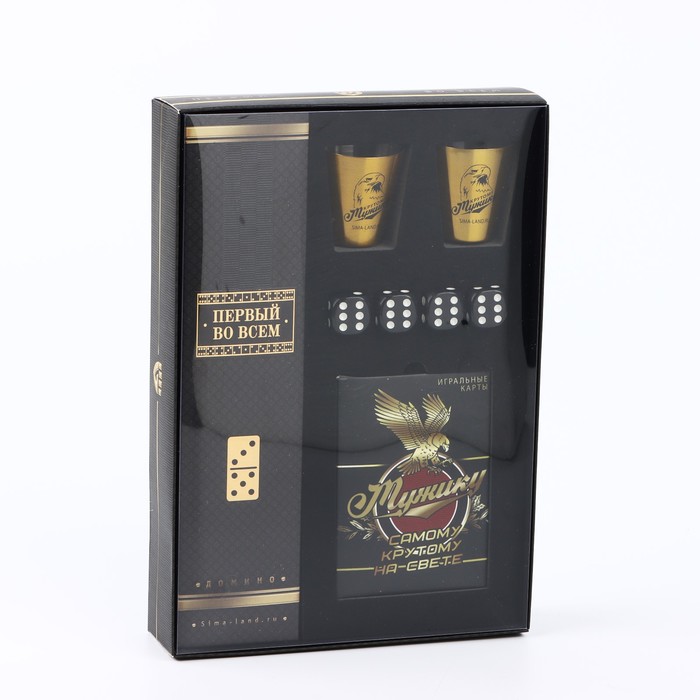 Подарочный набор мужской «Самому крутому», карты, домино, стопки 2 шт. × 30 мл, кости игральные 4 шт. — Характеристики