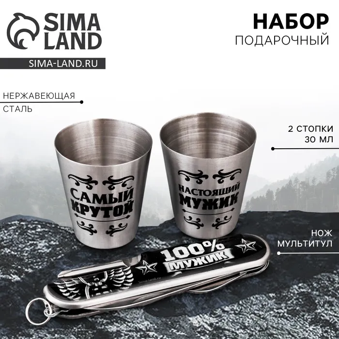 Подарочный набор мужской «Самый крутой»: нож мультитул, стопки 2 шт х 30 мл — Характеристики