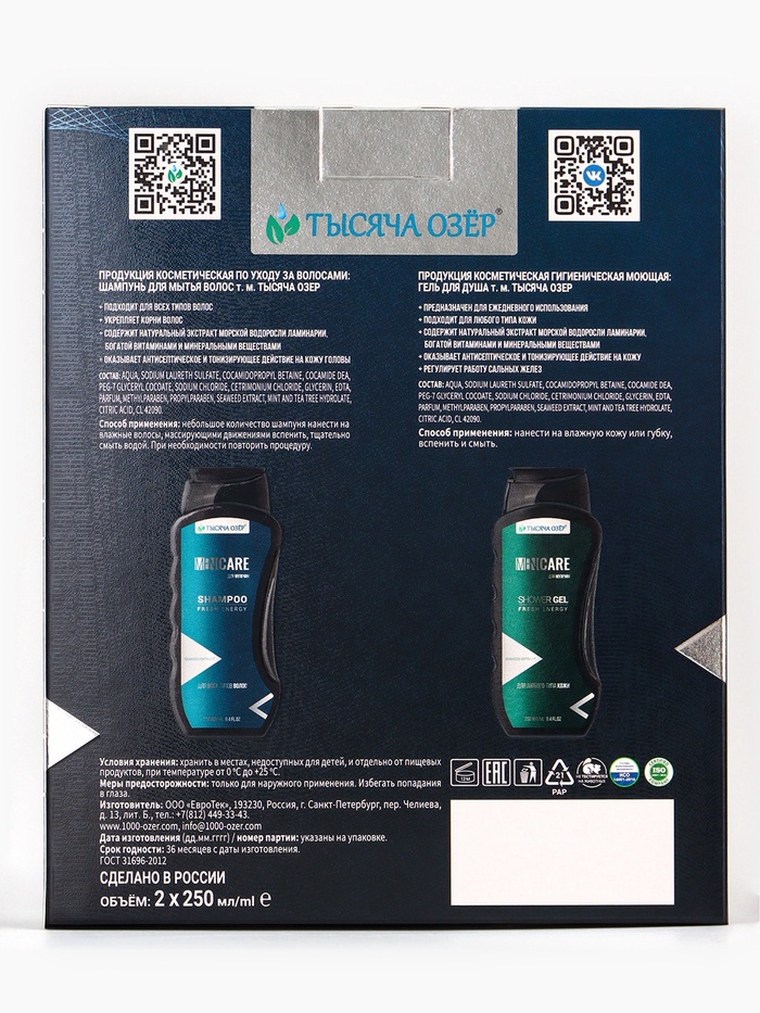Подарочный набор мужской «Тысяча Озёр», шампунь 250 мл, гель для душа 250 мл — Характеристики