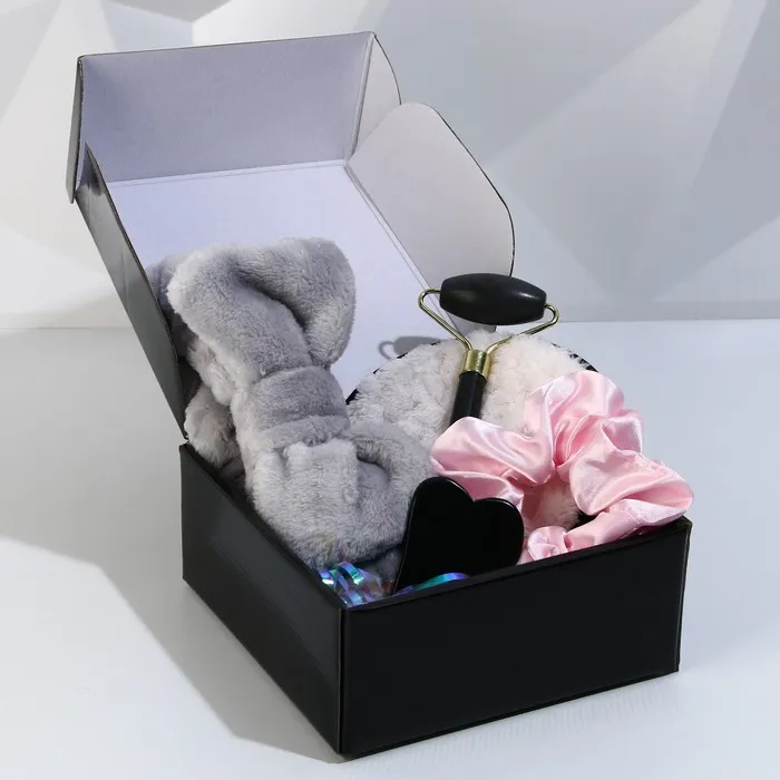 Подарочный набор для женщин это настоящий бьюти бокс с инструментами для ухода за лицом. Сюрприз бокс понравится любой девушке, в подарок маме, любимой женщине, жене подруге, сестре.В состав бьюти-бокса входят маст-хевы для ежедневного ухода -Роллер и скребок — помощники в уходе за собой на каждый день. Утром, чтобы лицо проснулось; вечером — чтобы отдохнуло после трудного дня. Делать массаж нужно от центра лица наружу и всегда вверх. Благодаря глубоким движениям массажа прохладным скребком и роллером гуаша снижается отечность лица, восстанавливается водный баланс клеток кожи. Способствует уменьшению темных кругов под глазами и выведению токсинов из организма. Маленький секрет: охладив роллер и скребок гуаша, Вы достигните более глубокого и быстрого результата от массажа.