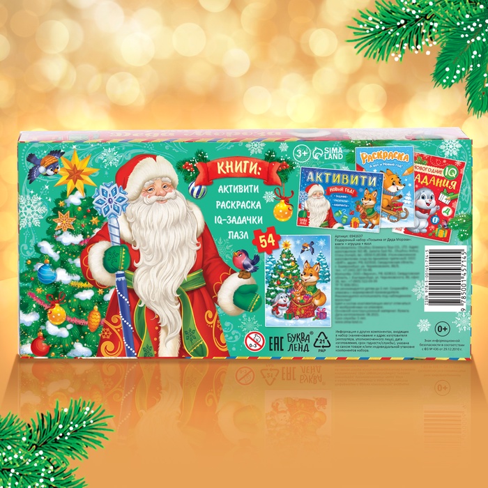 Подарочный набор на новый год «Посылка от Деда Мороза», книги, игрушка и пазл МИКС — Характеристики