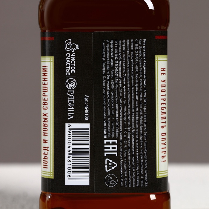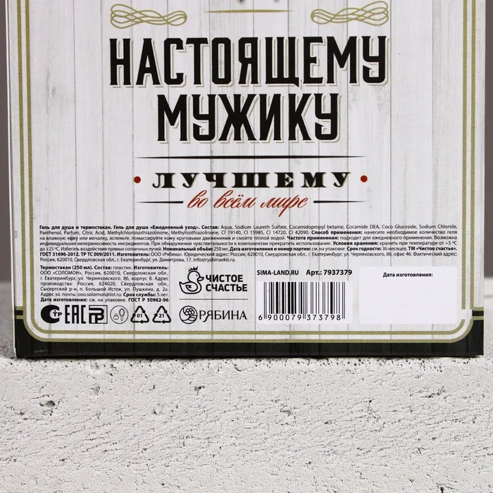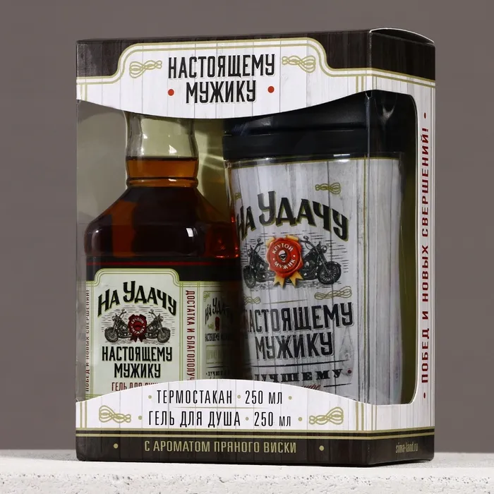 Подарочный набор «На удачу». гель для душа виски 250 мл и термостакан 250 мл, Чистое счастье — Характеристики