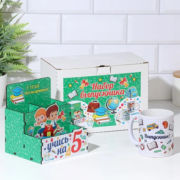 Подарочный набор на выпускной «Выпускнику школы!» органайзер, кружка — Характеристики