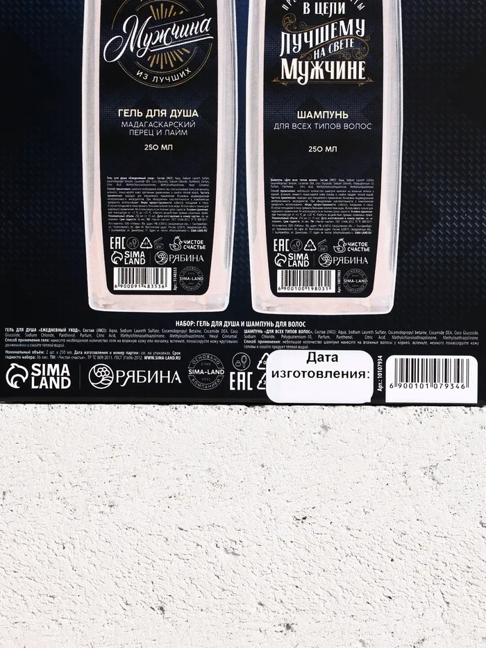 Подарочный набор «Настоящему мужчине», гель для душа и шампунь для волос, 2×250 мл, HARD LINE — Характеристики