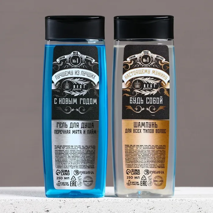Подарочный набор «Настоящему мужику», гель для душа и шампунь для волос, 2×250 мл, Чистое счастье — Характеристики