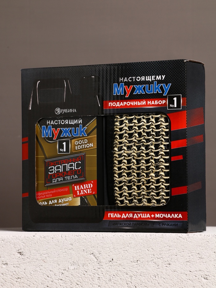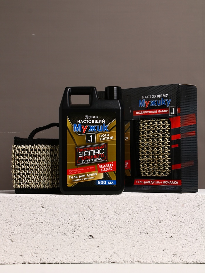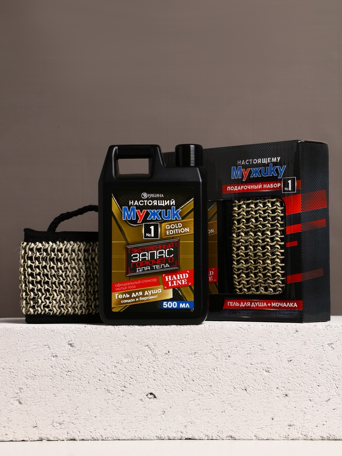 Подарочный набор «Настоящему мужику», гель для душа канистра 500 мл и мочалка лента, HARD LINE — Характеристики