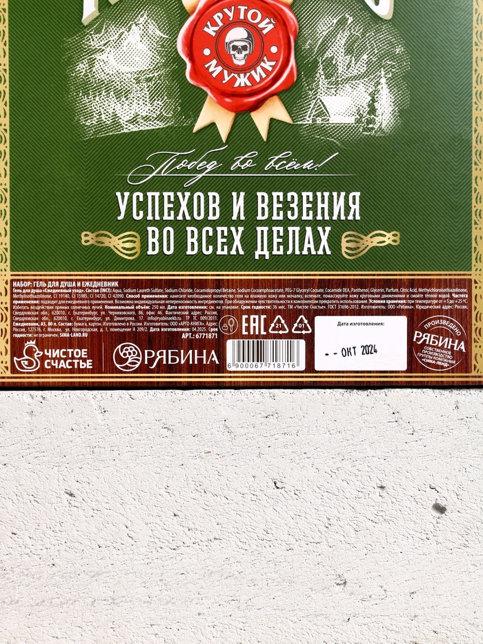 Подарочный набор «Настоящему мужику», гель для душа виски 250 мл и ежедневник, Чистое счастье — Характеристики