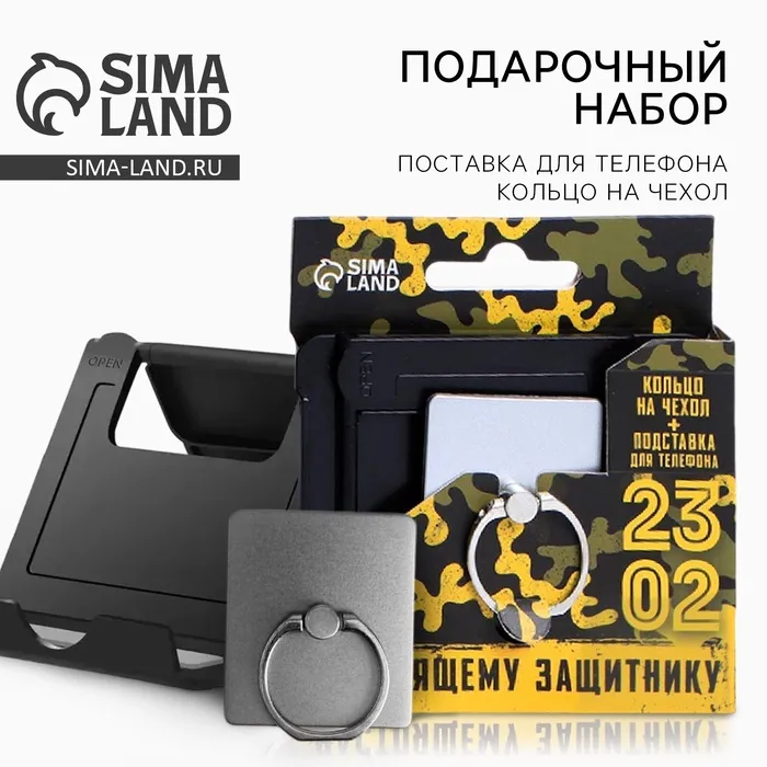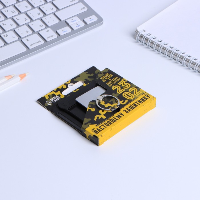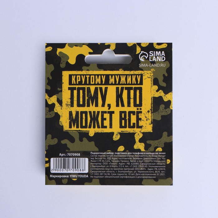 Подарочный набор «Настоящему защитнику. 23 февраля», подставка для телефона и кольцо на чехол — Характеристики