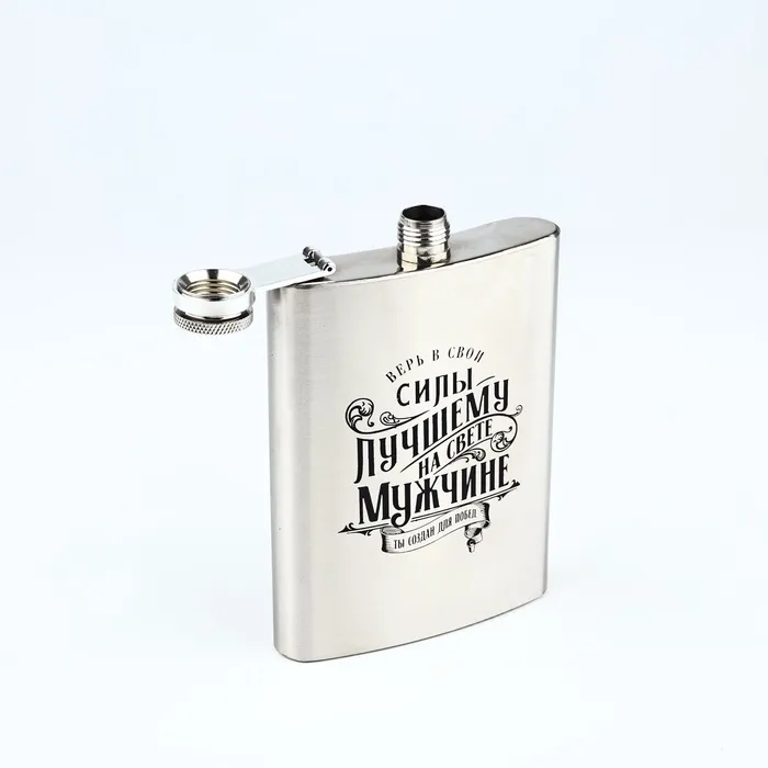 - Удобство использования: фляжка имеет функциональную крышку, что обеспечивает герметичность и сохранность напитка. Воронка позволяет аккуратно переливать жидкость из одной ёмкости в другую.