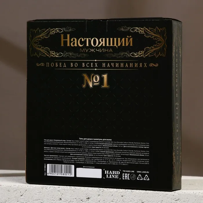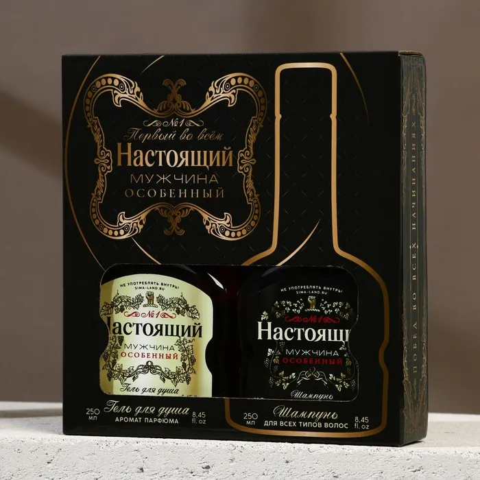 Подарочный набор «Настоящий мужчина»: гель для душа и шампунь для волос коньяк, 2×250 мл, Чистое счастье — Характеристики