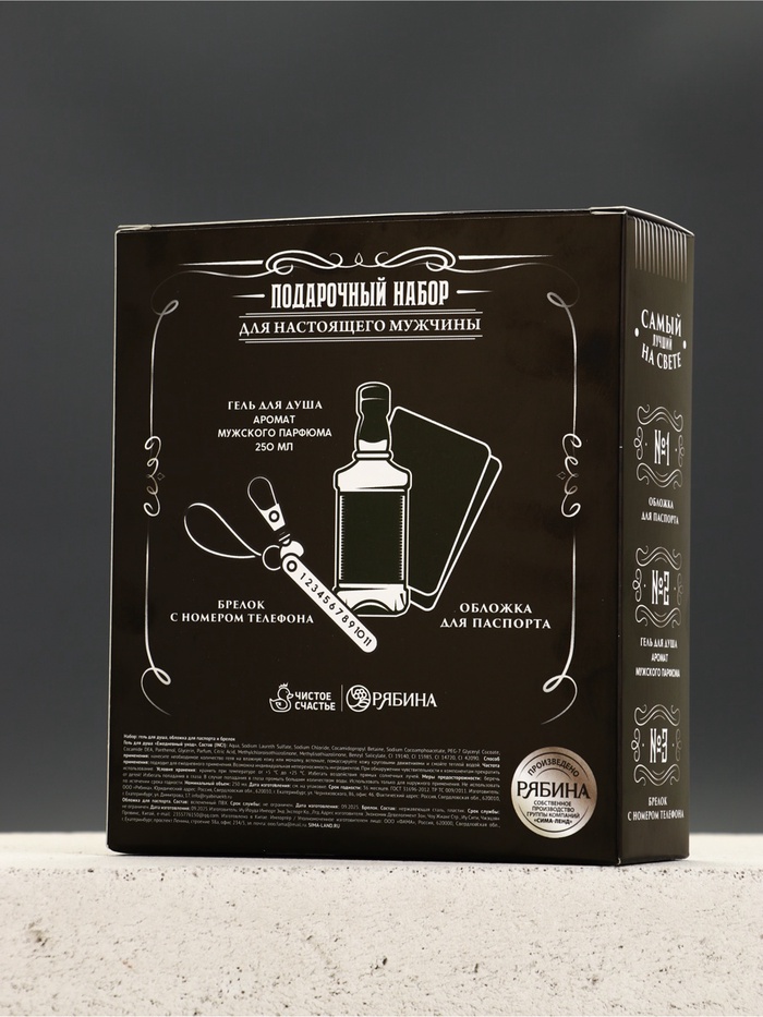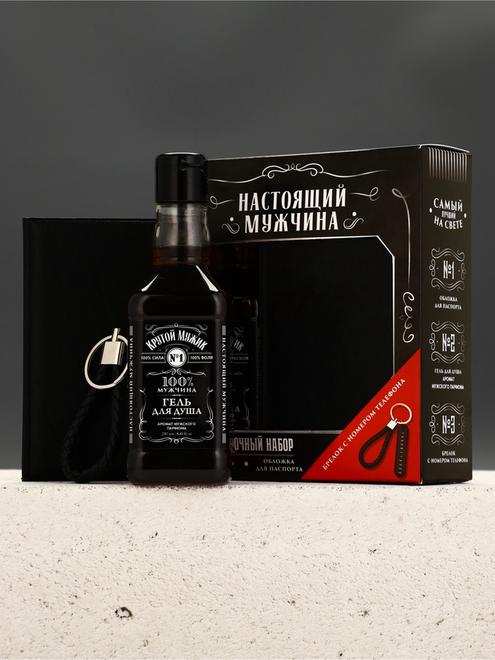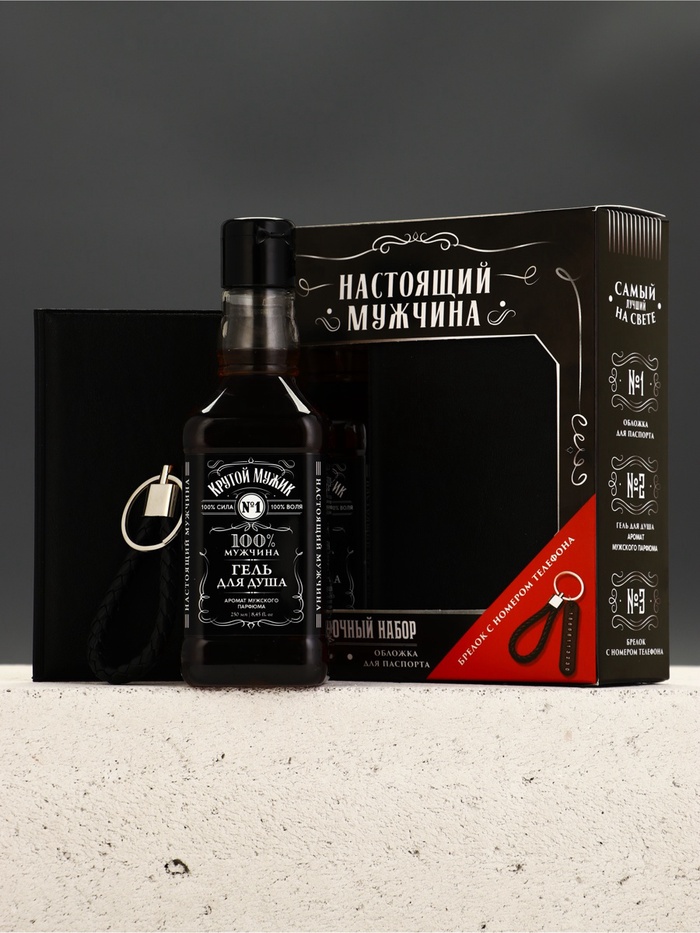 Подарочный набор «Настоящий мужчина», гель для душа, обложка для паспорта, брелок, Чистое счастье — Характеристики