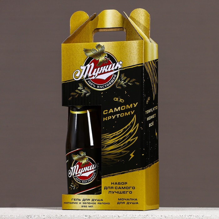 Подарочный набор «Настоящий мужик», гель для душа пиво 250 мл и мочалка для тела, HARD LINE — Характеристики