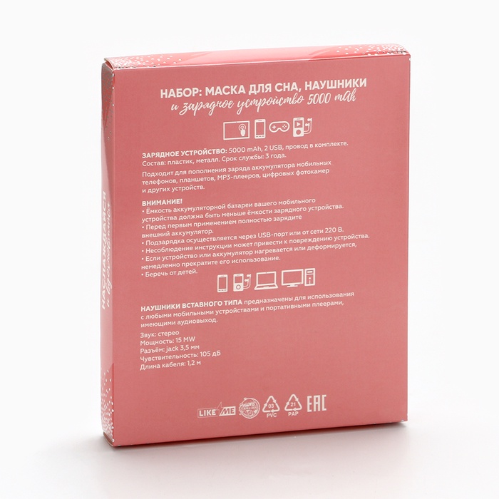 Набор будет удобен тем, кто постоянно путешествует: наушники спасть от стороннего шума, если вы находитесь в машине или самолете, павер банк не даст сесть устройствам, а маска для сна спасет ваш сон в дневное время.