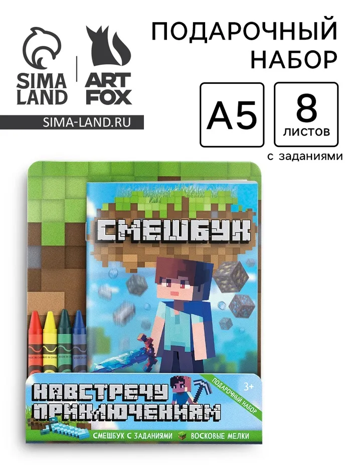 Подарочный набор «Навстречу приключениям», смешбук А5, 8 листов и восковые мелки — Характеристики