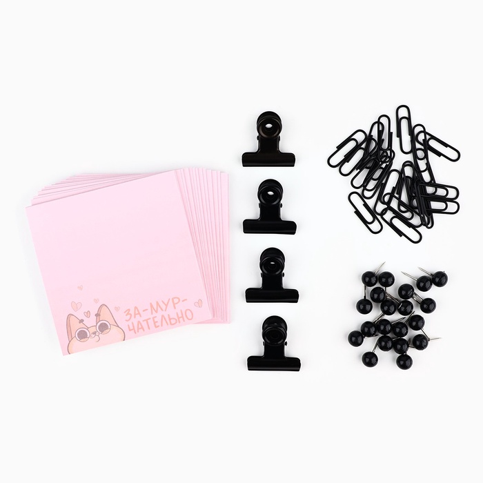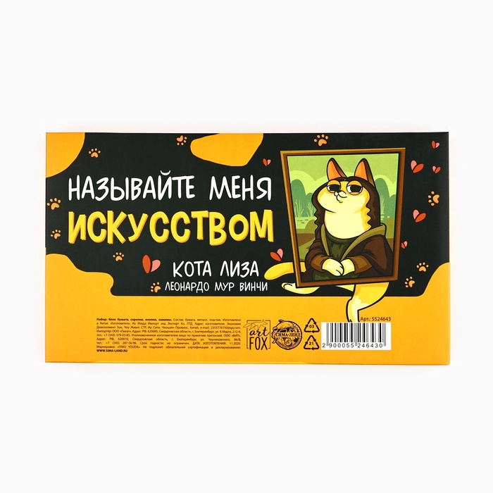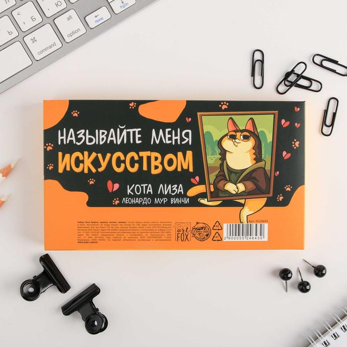 Подарочный набор «Называй меня искусством», блок бумаг 150 л, скрепки, кнопки, зажимы — Характеристики