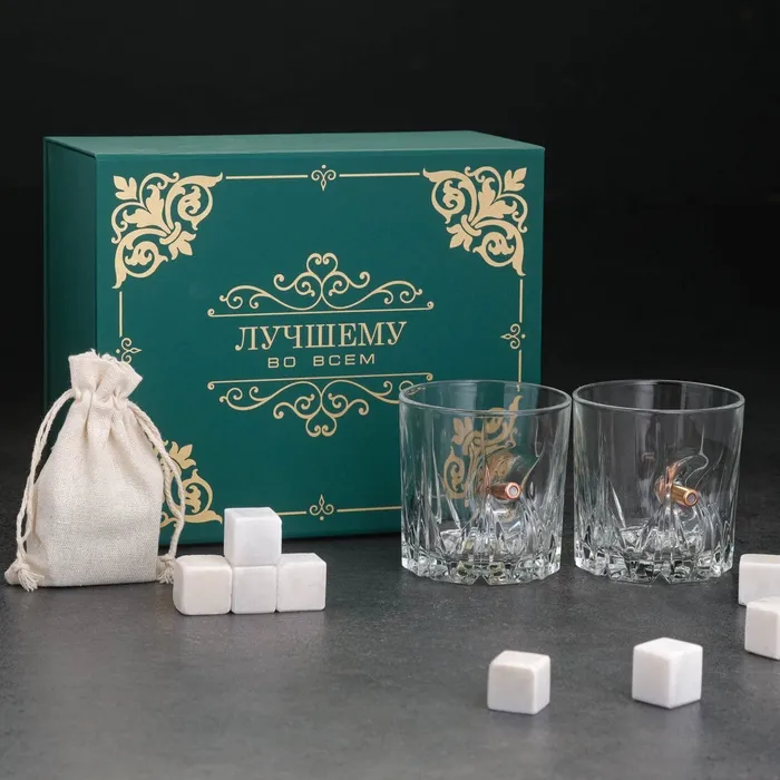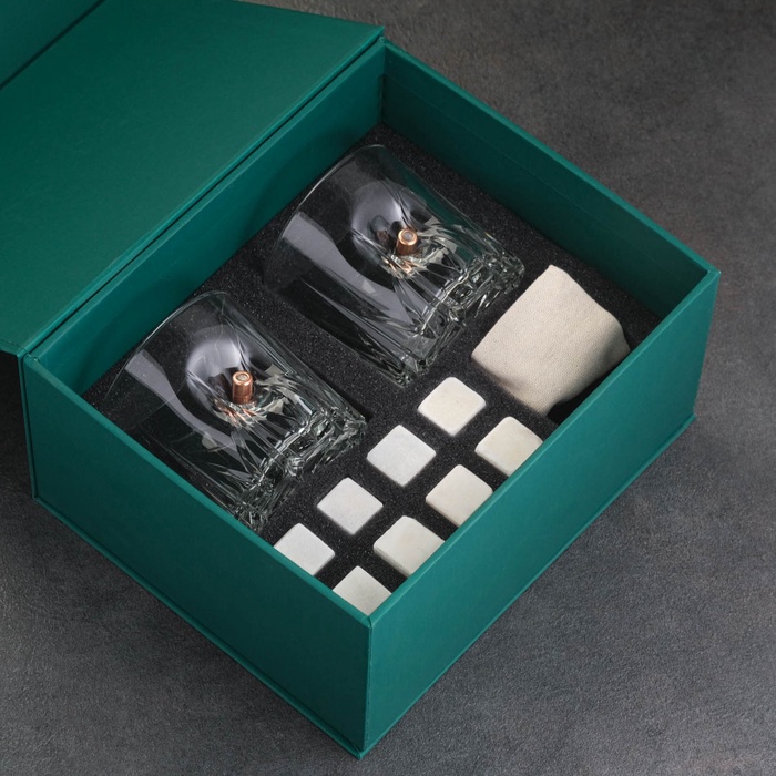 Подарочный набор «Непробиваемый», 2 стакана 200 мл, 8 камней для виски — Характеристики