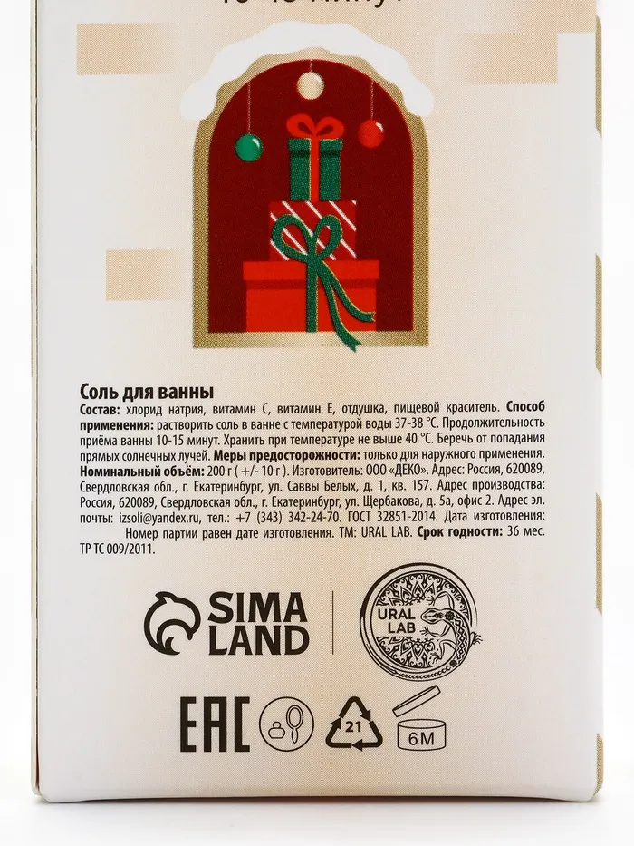 Подарочный набор New Year holidays, гель для душа 300 мл и соль для ванны 200 мл, URAL LAB — Характеристики