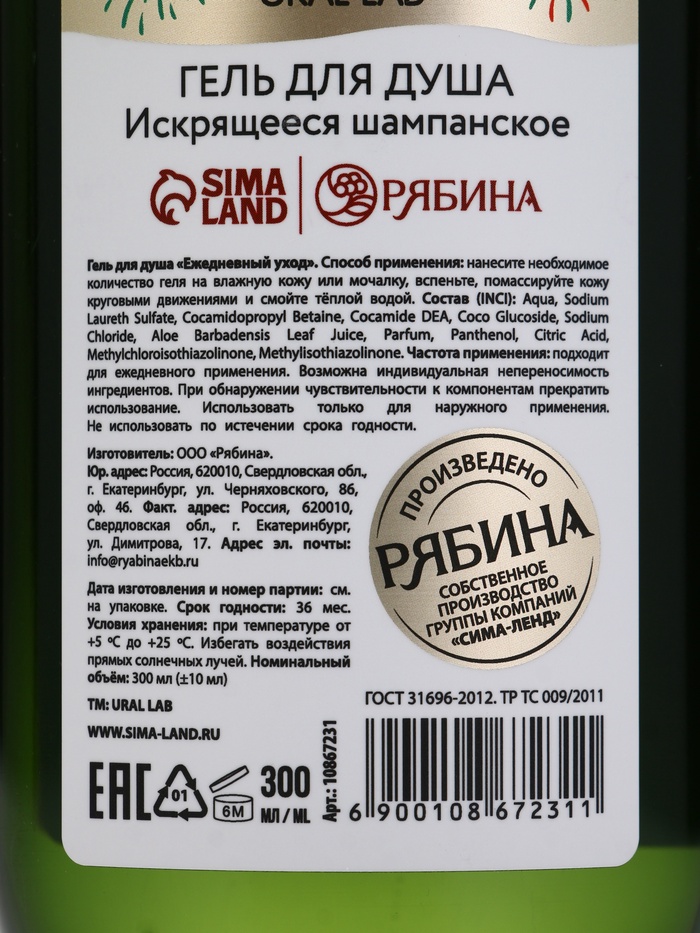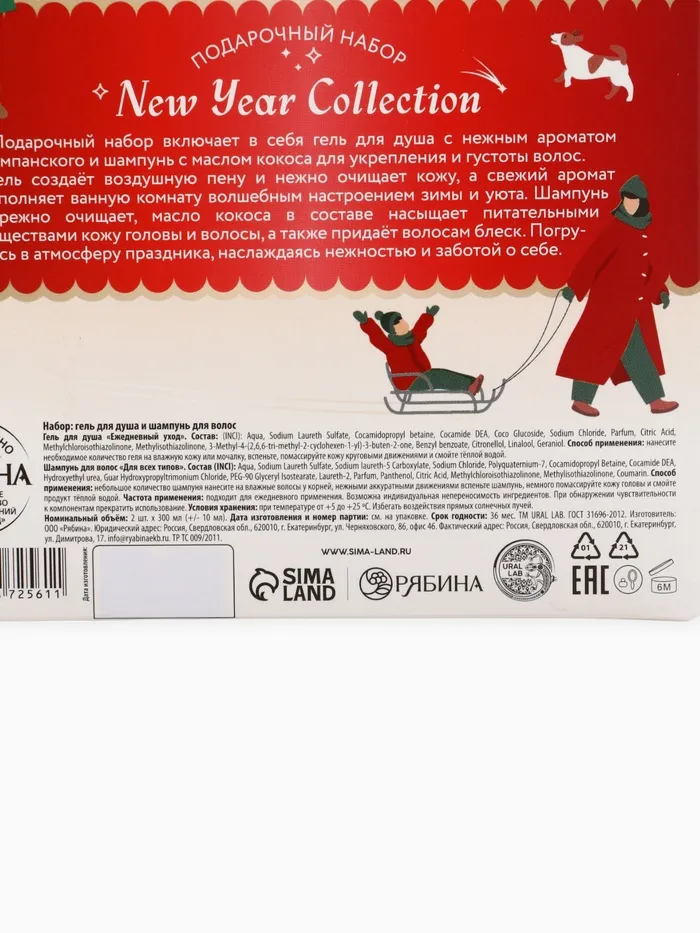 Подарочный набор New Year holidays, гель для душа и шампунь для волос 2×300 мл, URAL LAB — Характеристики