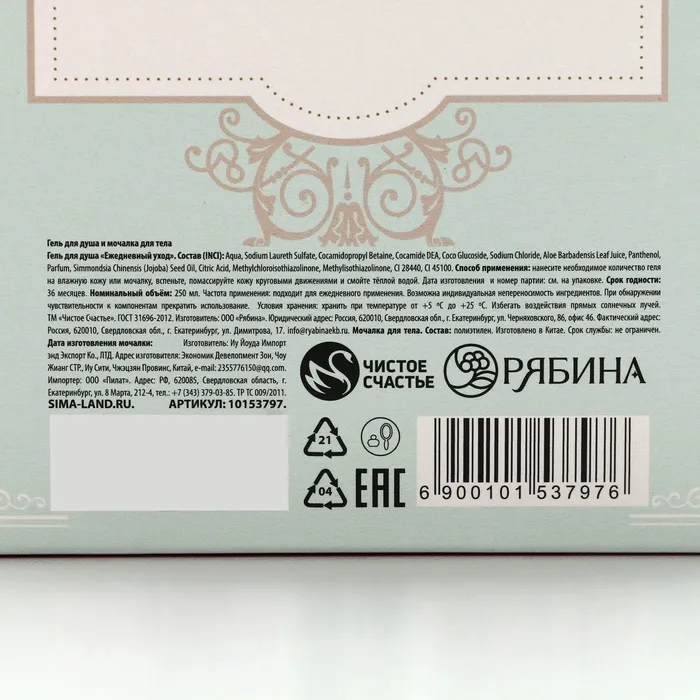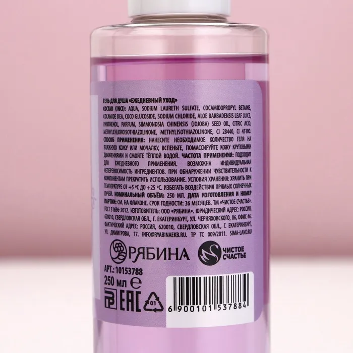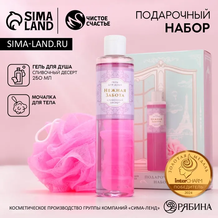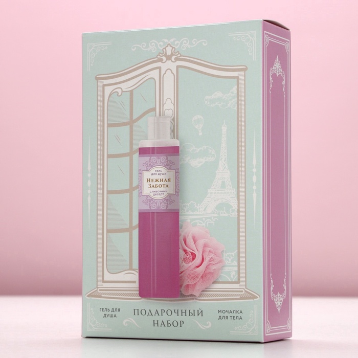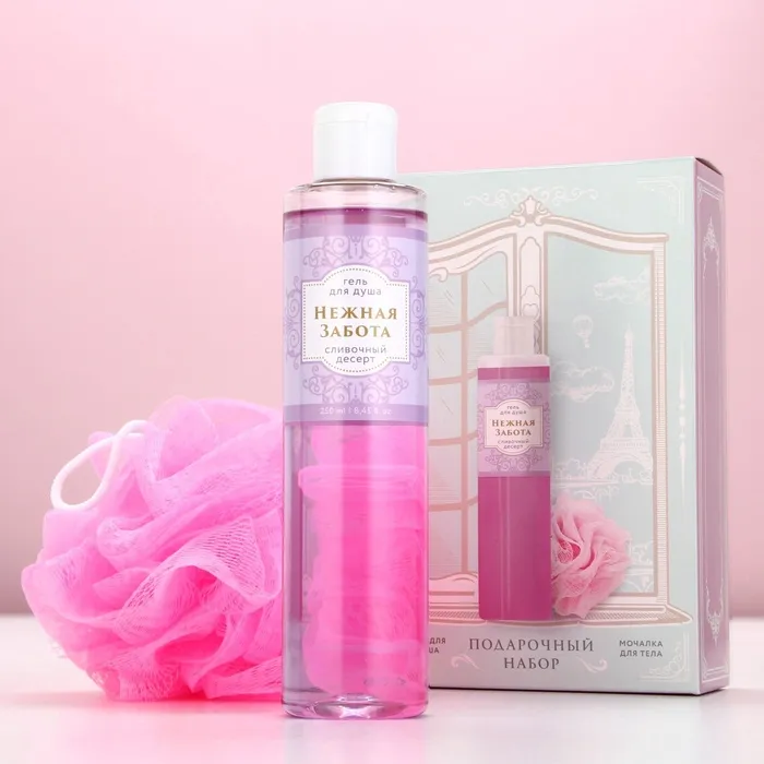 Подарочный набор «Нежная забота», гель для душа 250 мл и мочалка для тела, Чистое счастье — Характеристики
