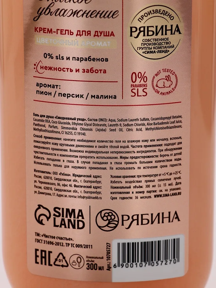 Подарочный набор «Нежность и забота», гель для душа, 300 мл и крем для тела, 200 мл, Чистое счастье — Характеристики