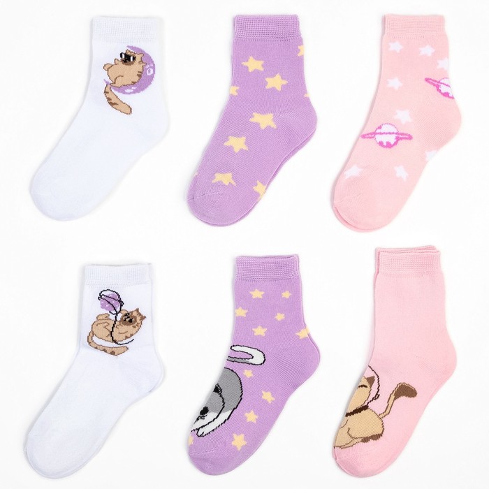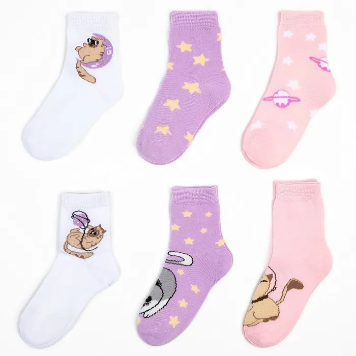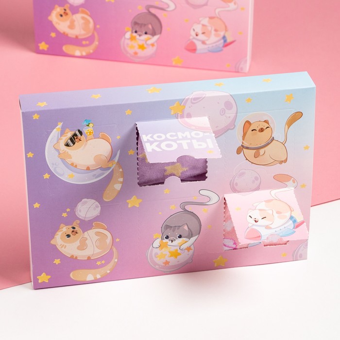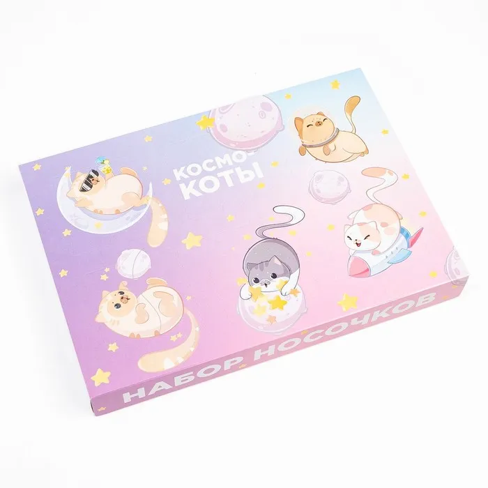 Подарочный набор носков адвент, 6 пар "Космо-котики" , 16-18 см — Характеристики