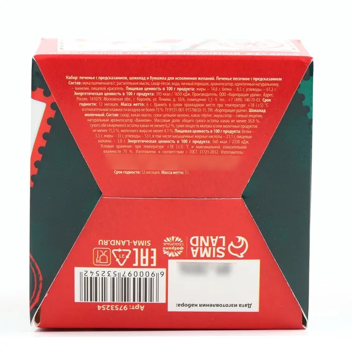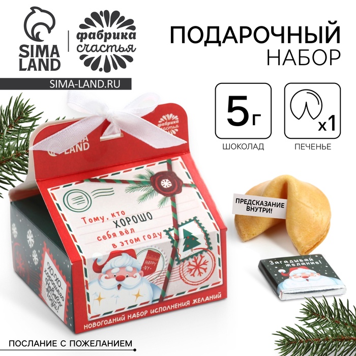 Подарочный набор «Новогодняя почта», печенье с предсказанием 1 шт., молочный шоколад 5 г, бумажка для исполнения желаний — Характеристики