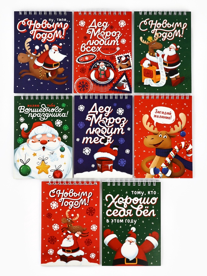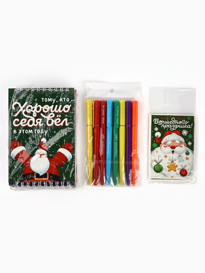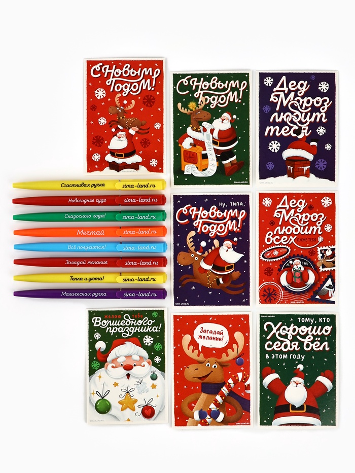 Подарочный набор новогодний, 8 ручек, 8 открыток, 8 блокнотов МИКС — Характеристики