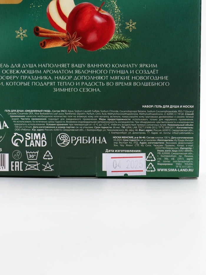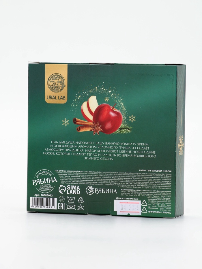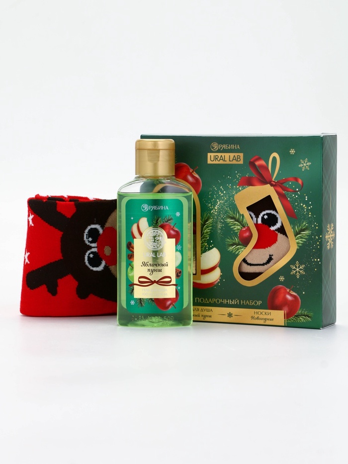 Подарочный набор новогодний «Ароматы праздника», гель для душа, яблоко, 100 мл и носки, URAL LAB — Характеристики