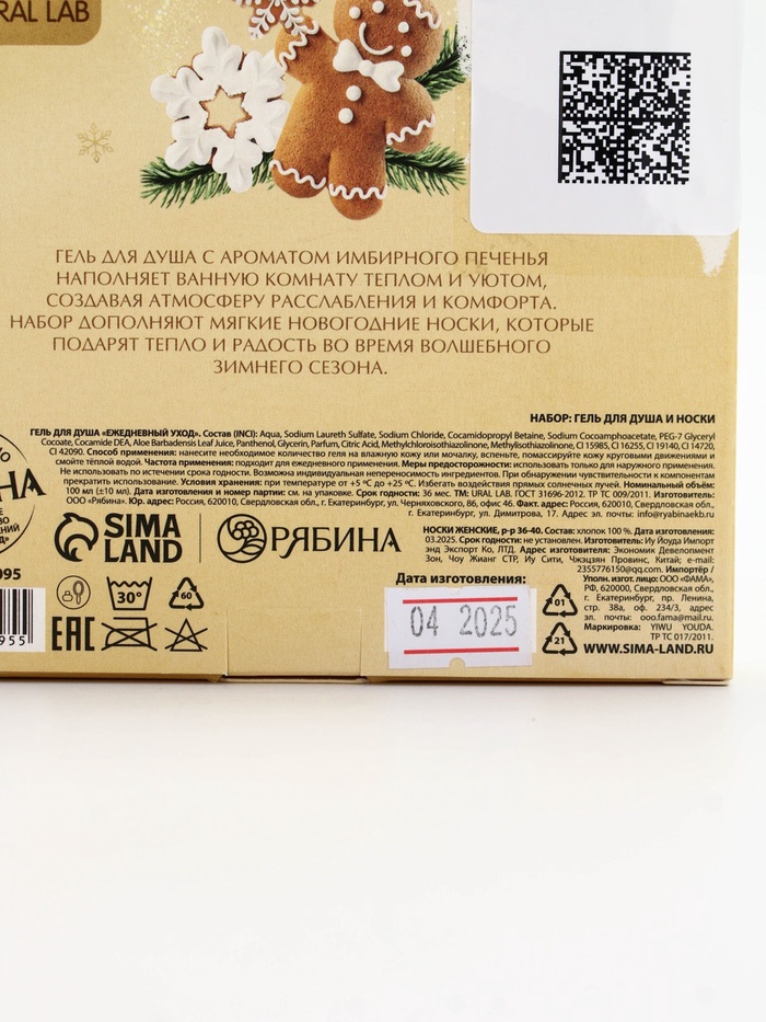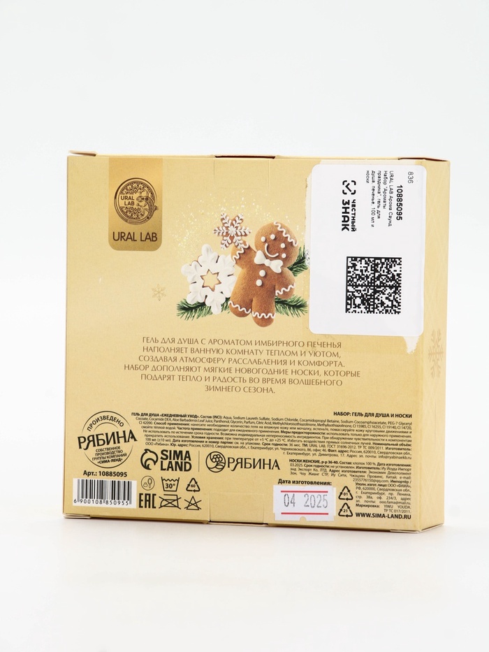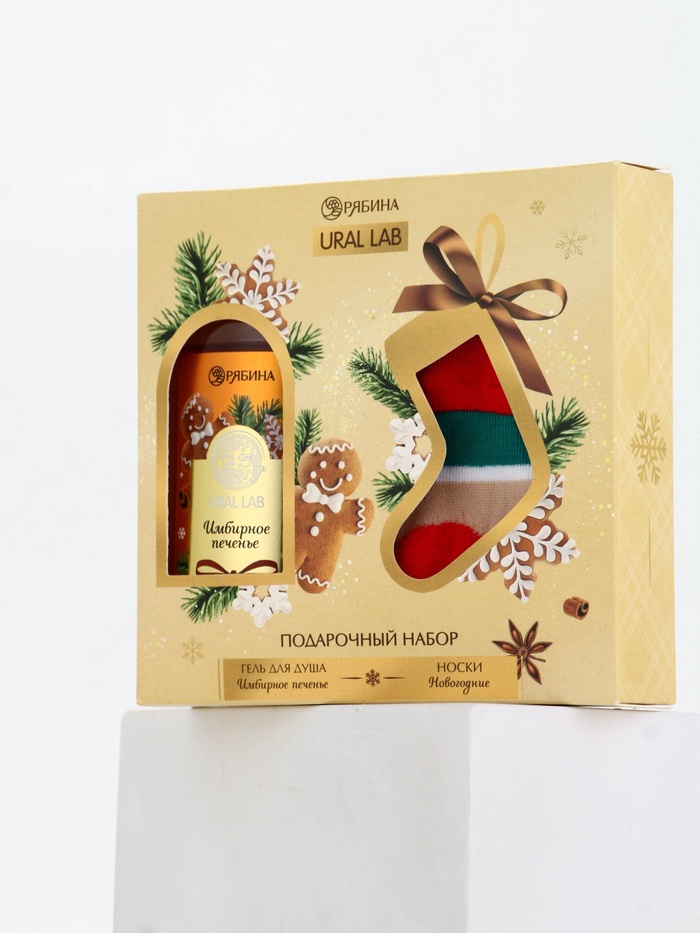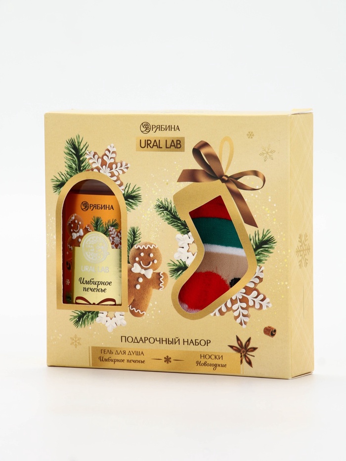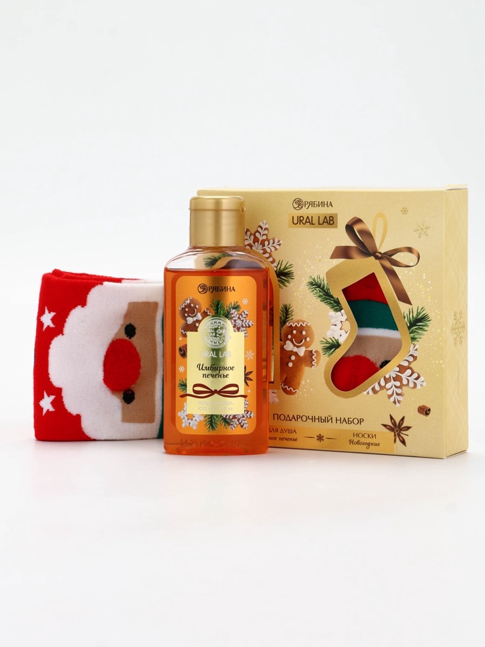 Подарочный набор новогодний «Ароматы праздника», гель для душа, печенье, 100 мл и носки, URAL LAB — Характеристики