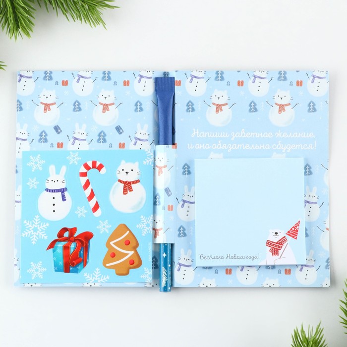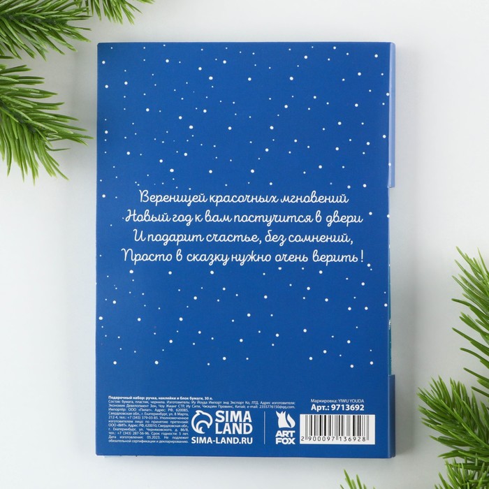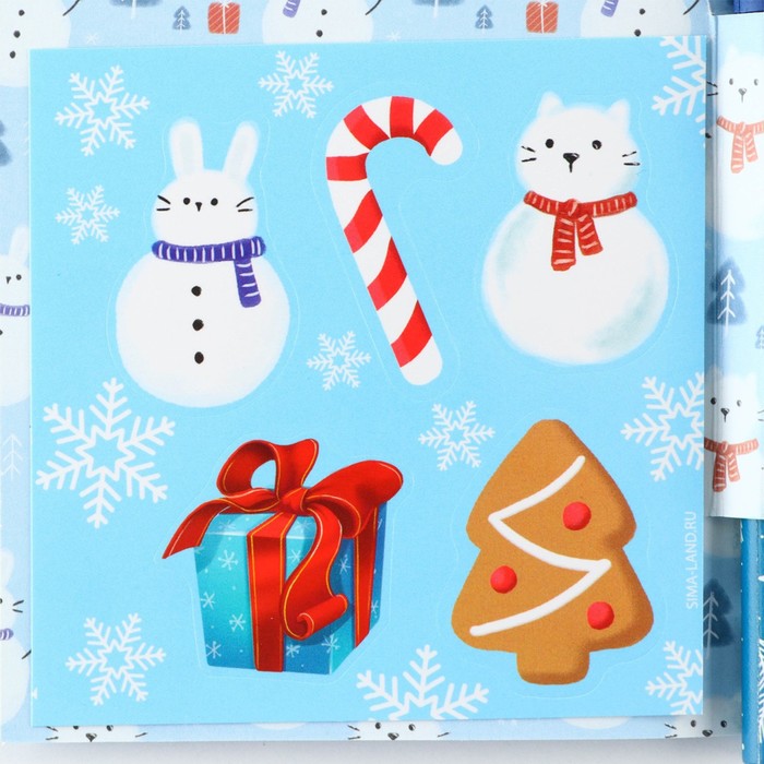 Подарочный набор новогодний, блок для записей 30 листов, ручка синяя паста, наклейки 5 шт. «С Новым Годом» — Характеристики