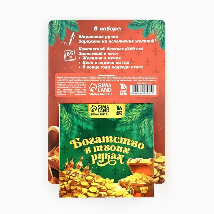 Подарочный набор новогодний, блокнот 9х9 см, ручка пластик «Достатка и благополучия» — Характеристики