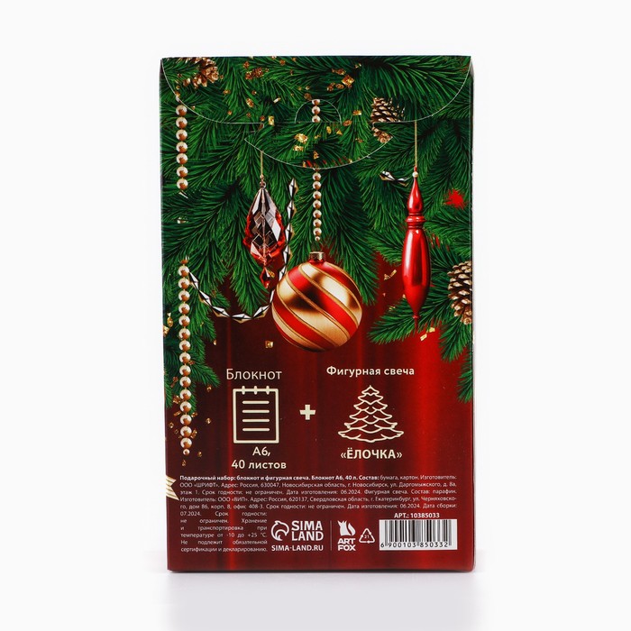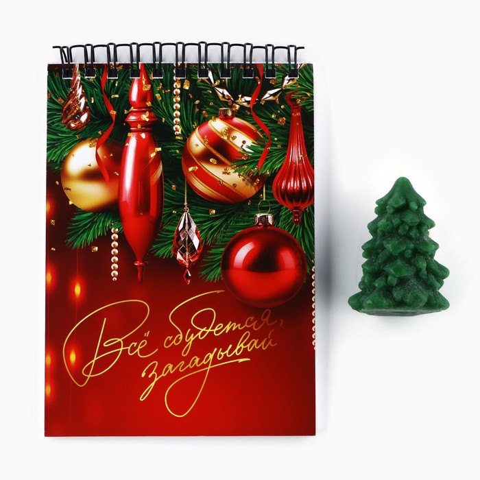 Подарочный набор новогодний, блокнот А6, 40 листов и фигурная свеча «Счастья в Новом году!» — Характеристики